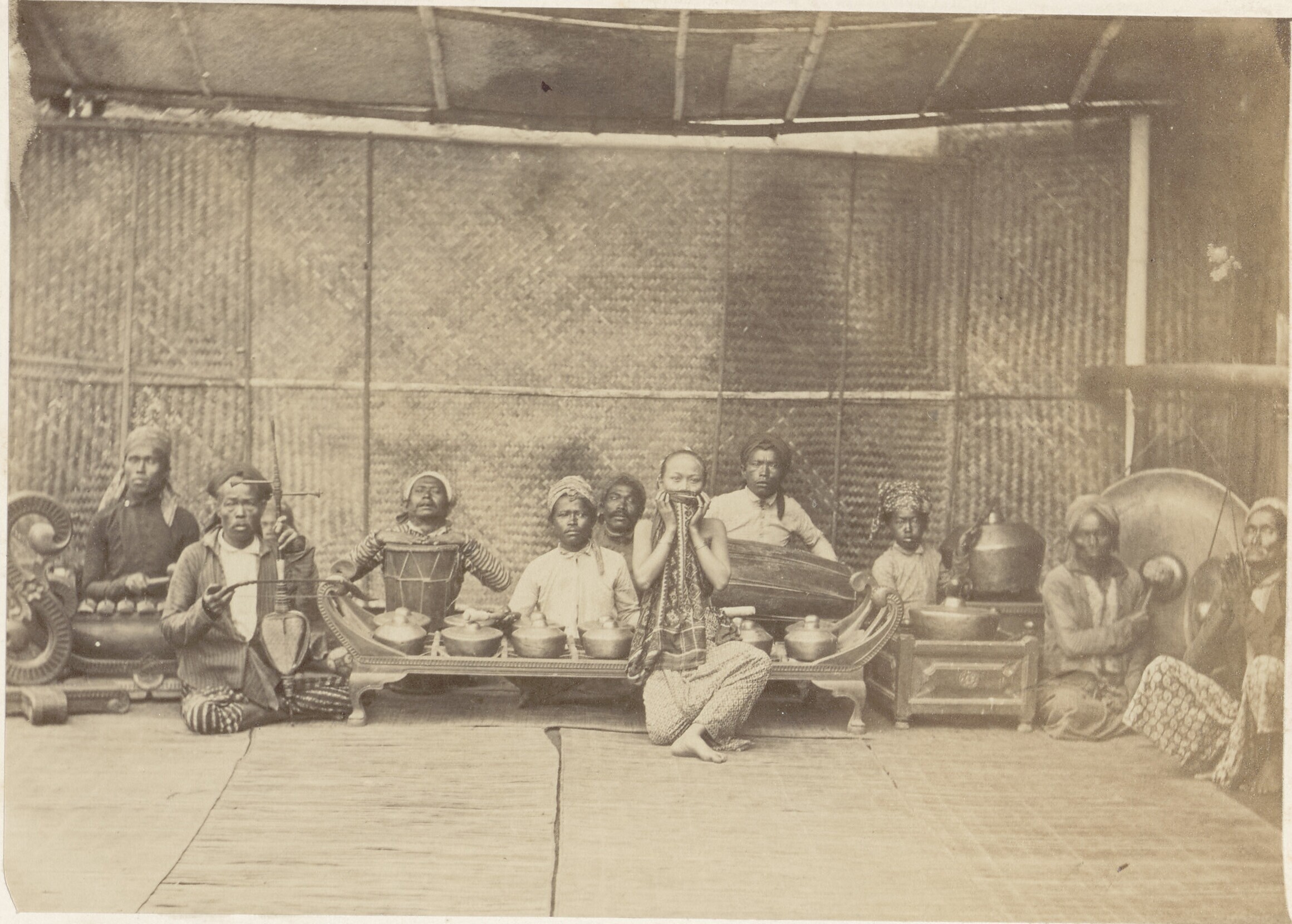 Groep Javaanse arbeiders houdt rust temidden van ges...