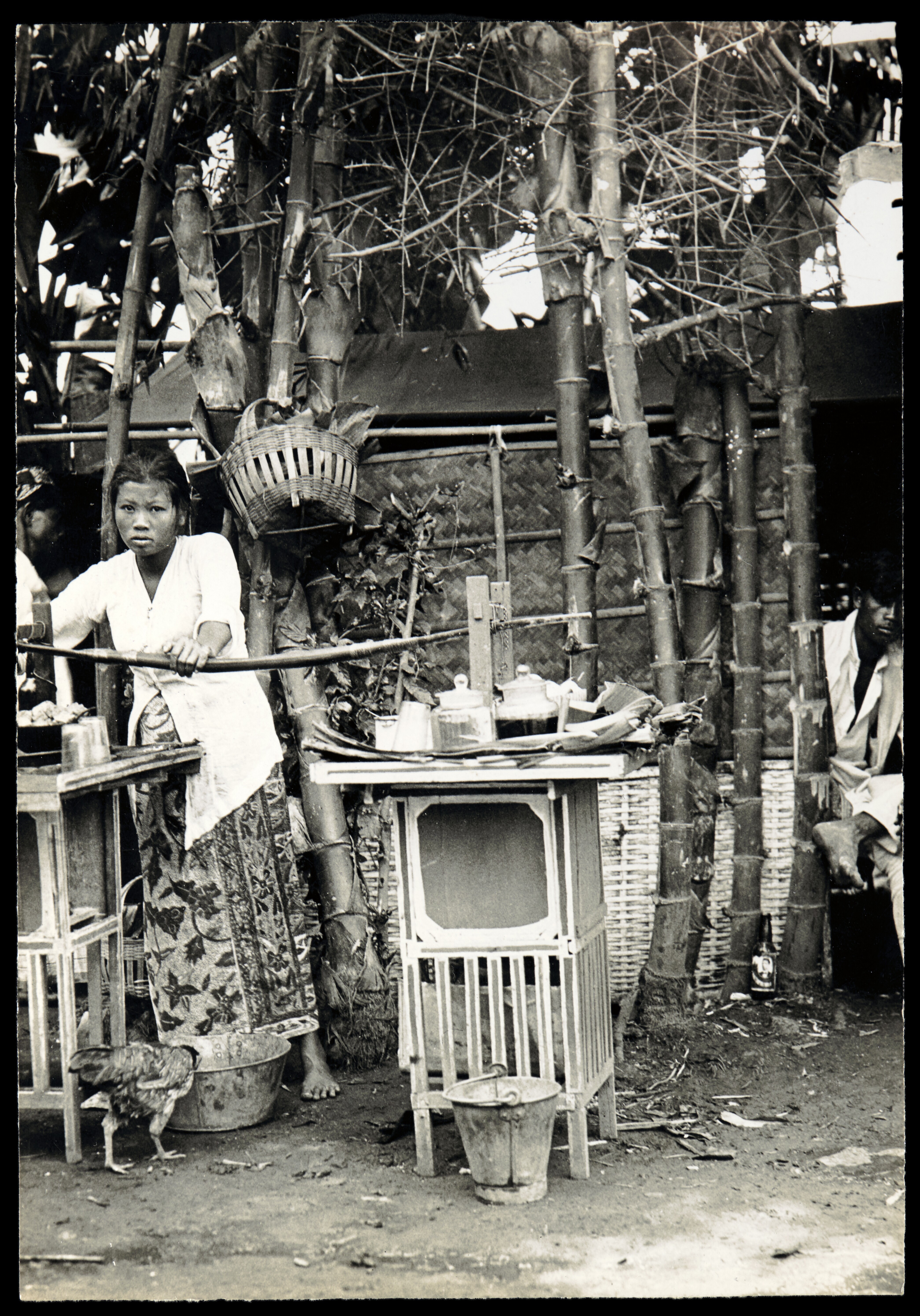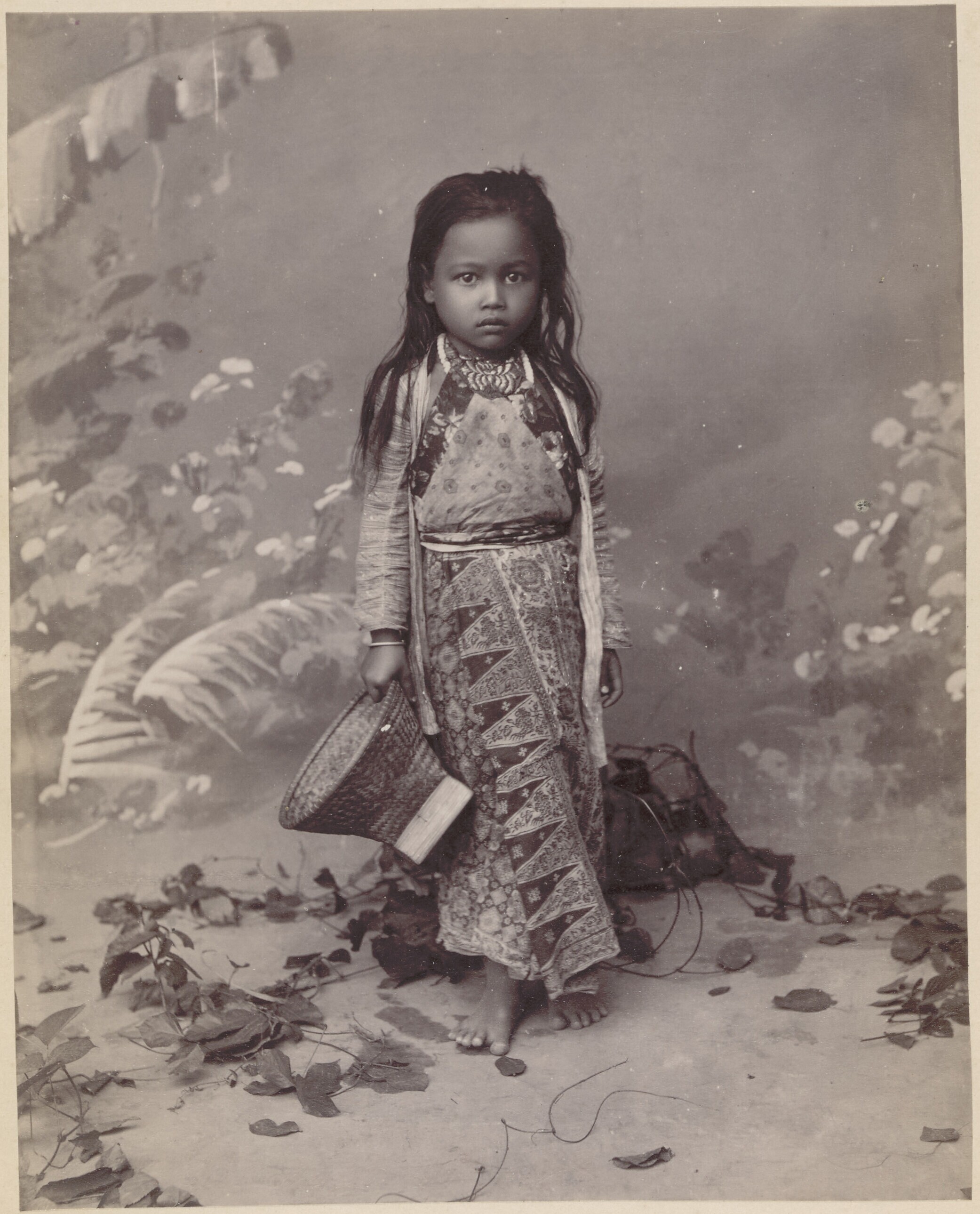 Studioportret van een Javaans meisje met mandje