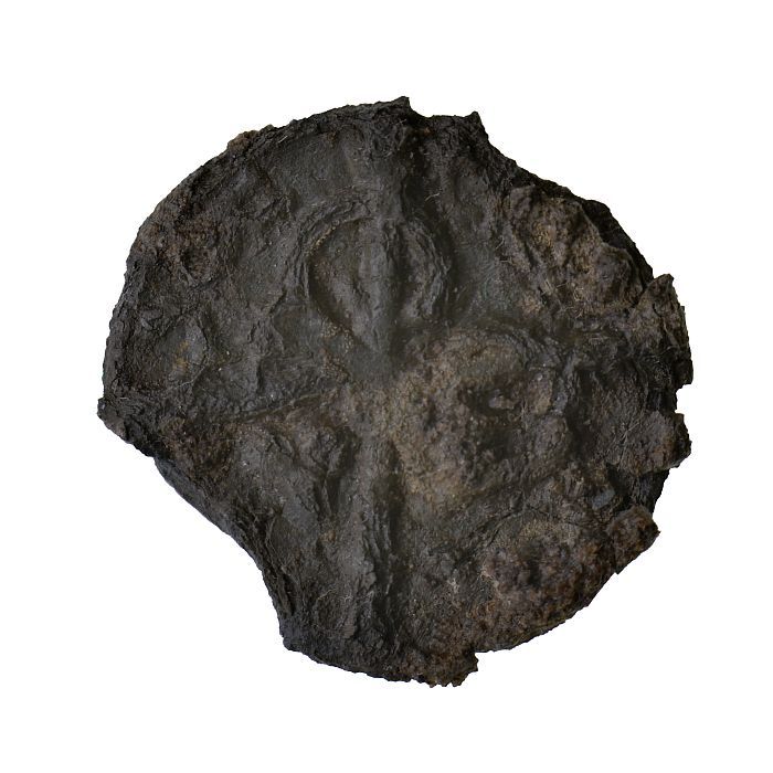 Armenpenning met Bourgondisch kruis, vuurslag, gulde...