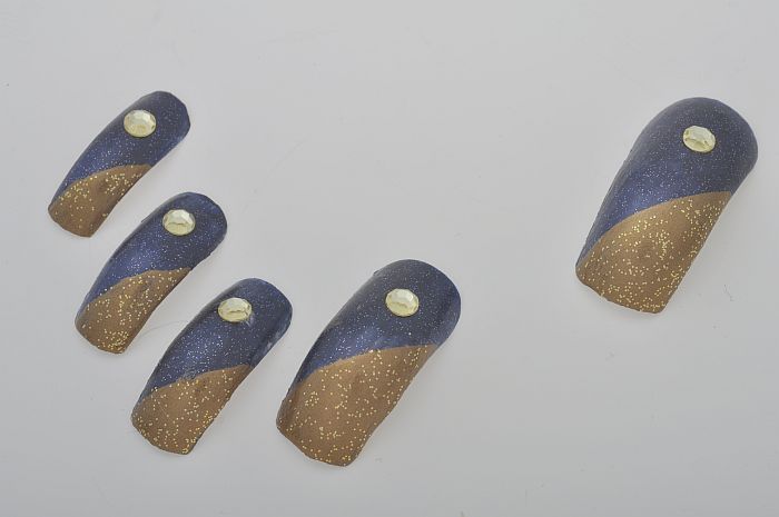 Serie van vijf kunstnagels, in glitter donkerblauw e...