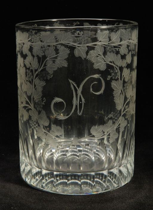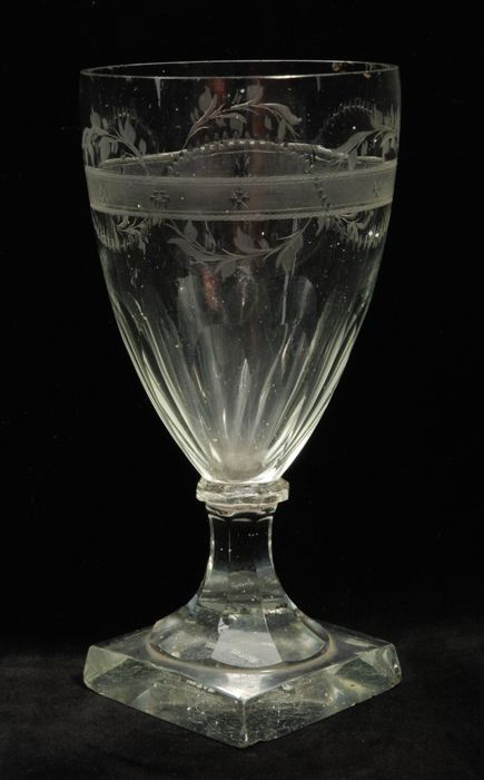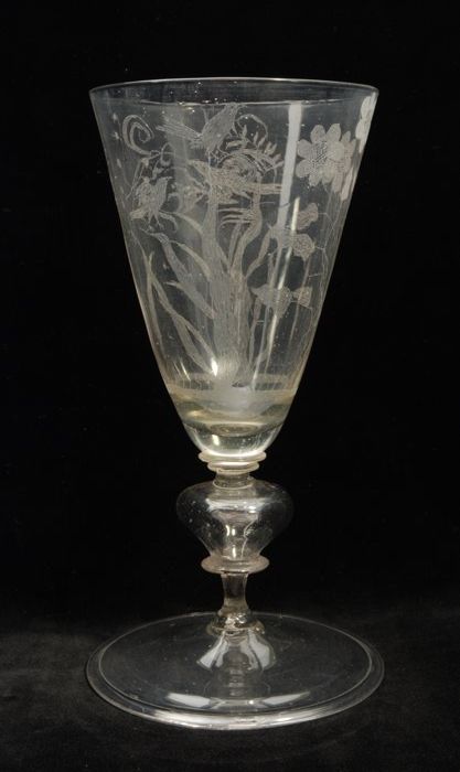 Kelkglas, gegraveerd met ranken en parelsnoer omslin...