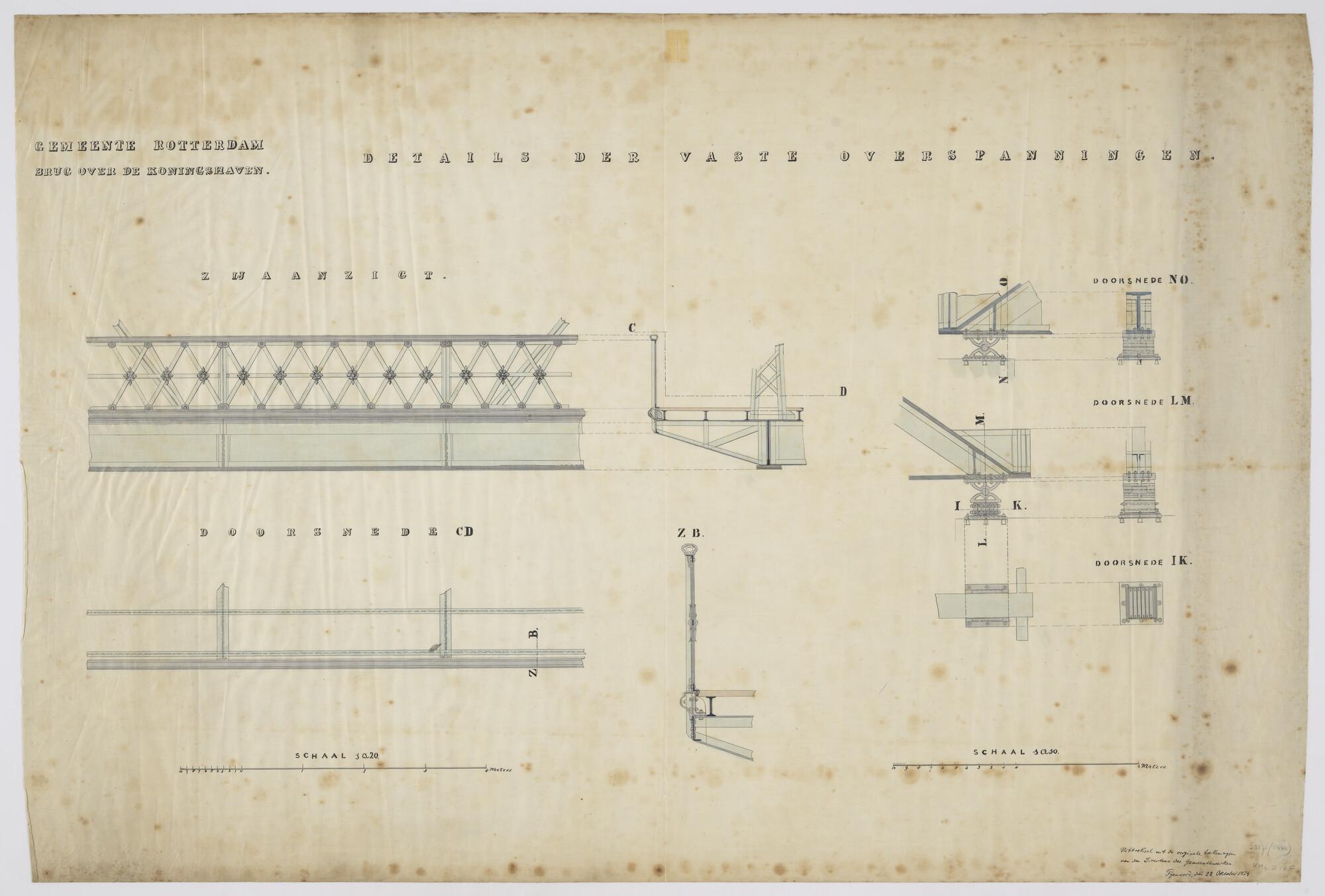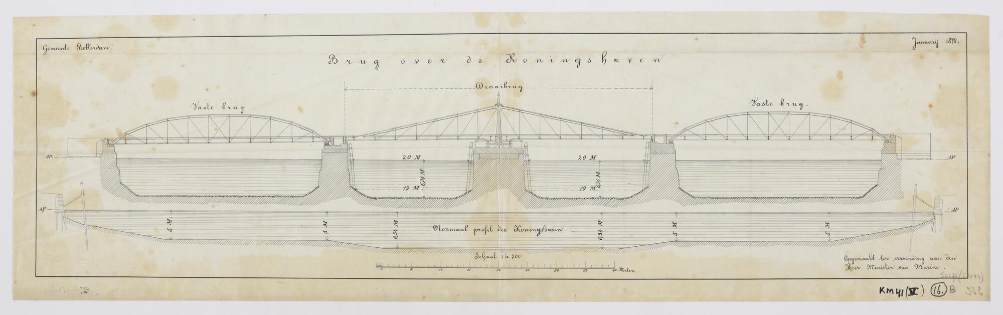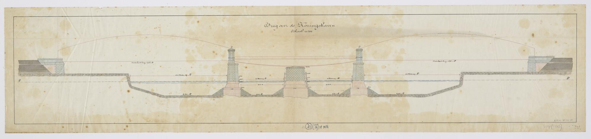 Langsdoorsnede van de brug over de Koningshaven te R...