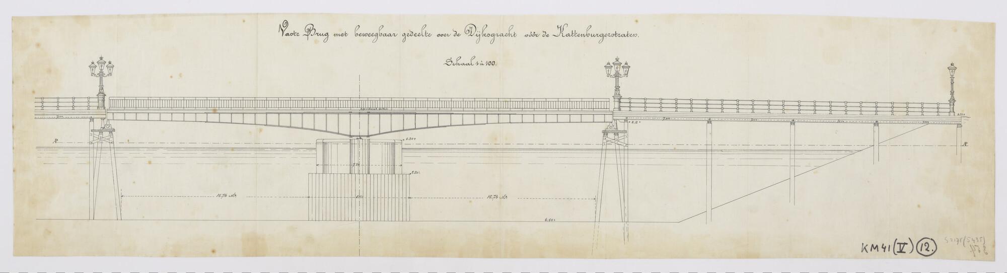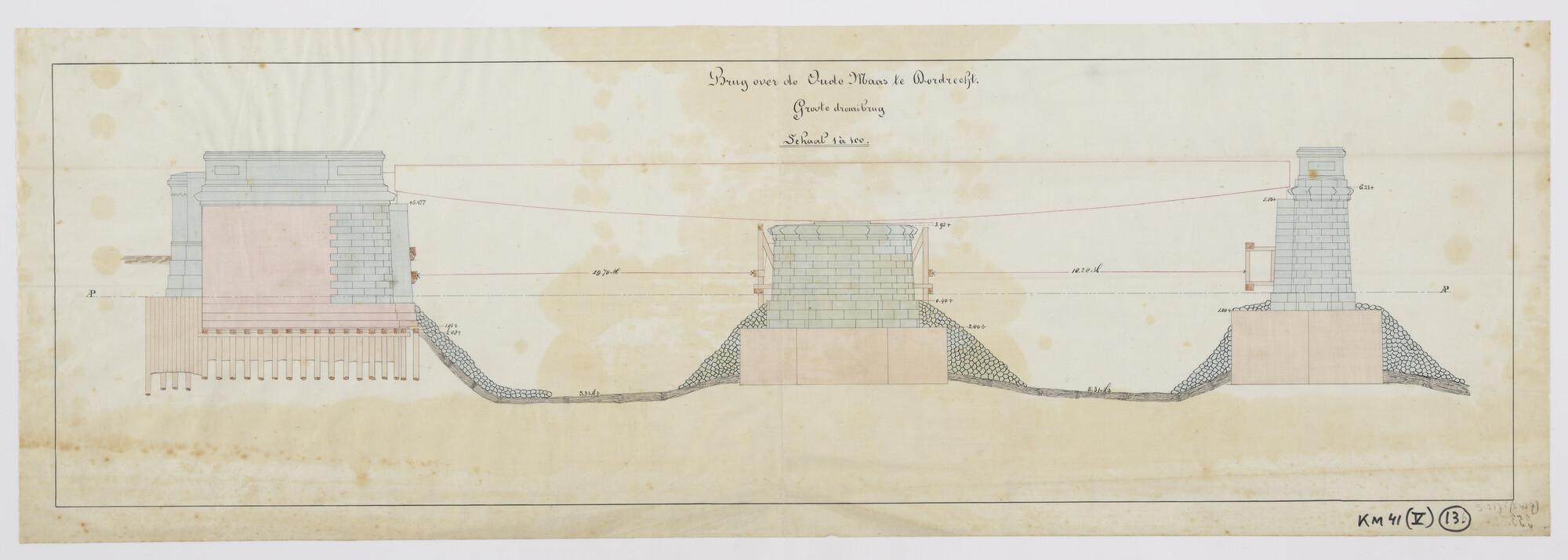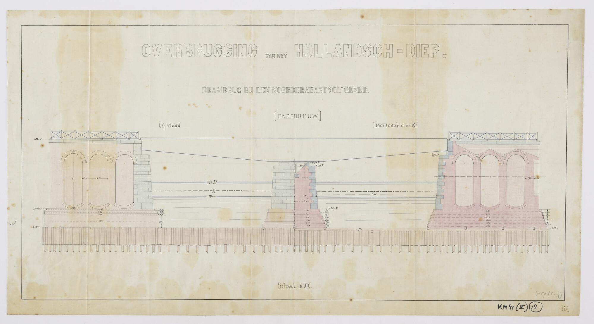 Langsdoorsnede van de brug over de Koningshaven te R...