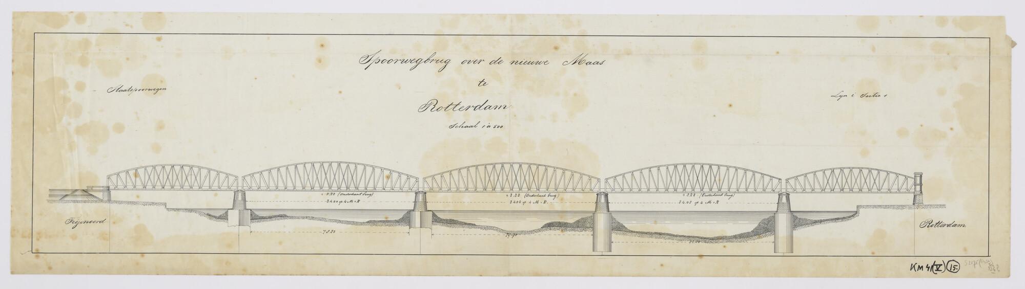 Aanzicht van de spoorbrug over de Nieuwe Maas te Rot...