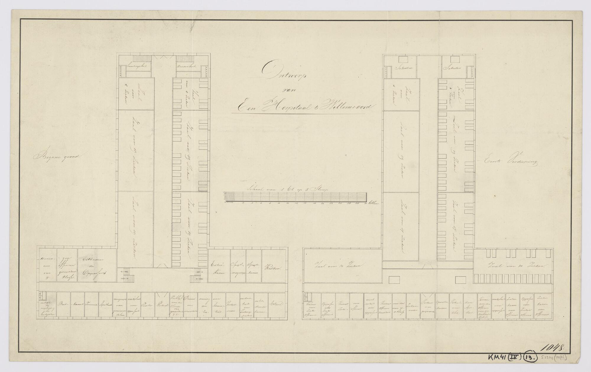 Plattegrond van het ontwerp voor het hospitaal bij h...