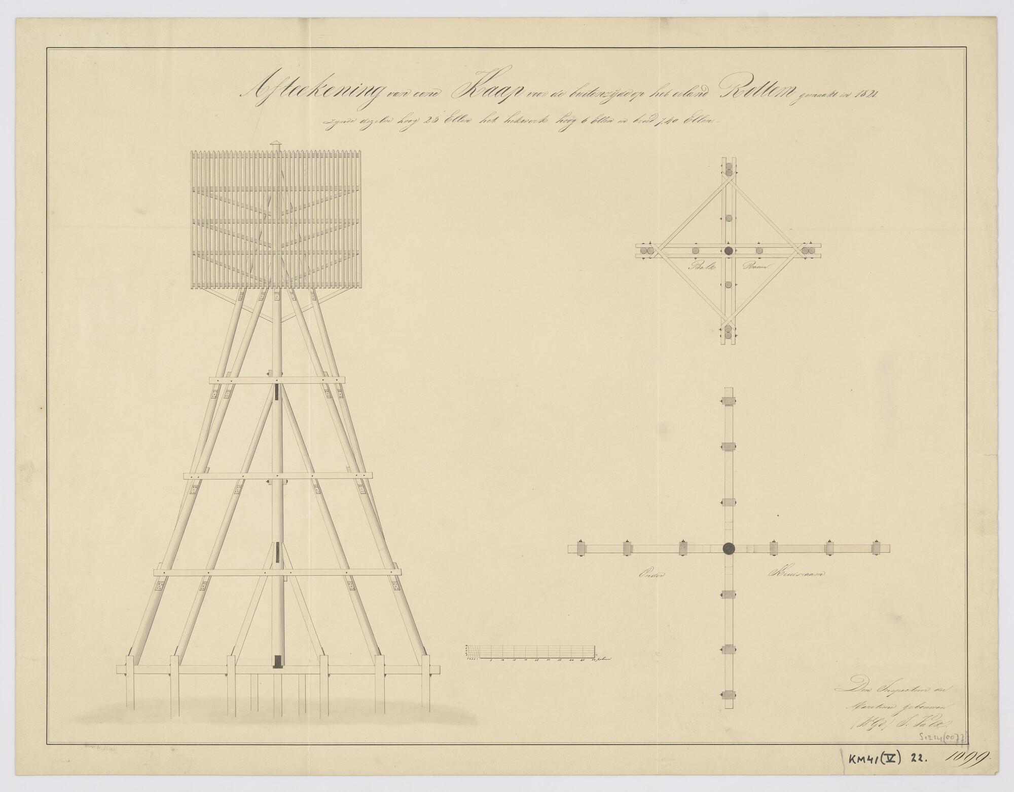 Aanzicht en doorsneden van een kaap (baken) op het e...