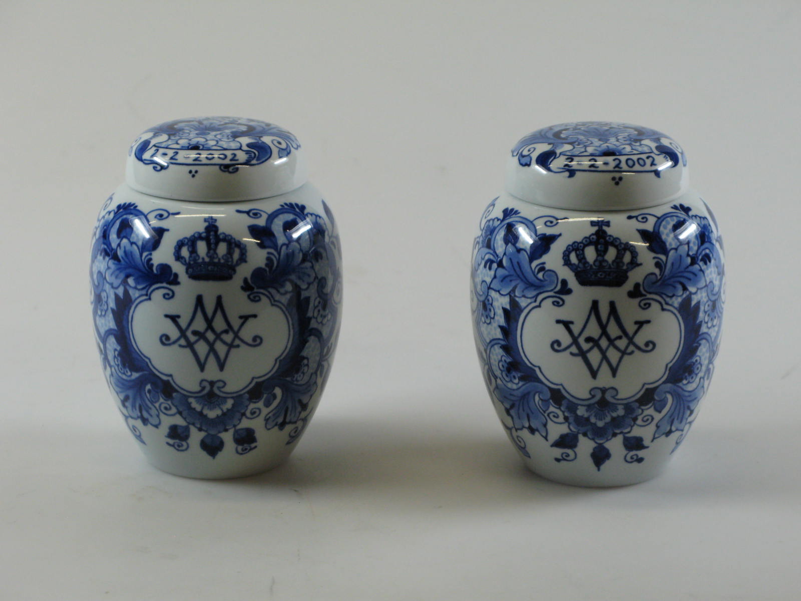 Twee Delftsblauwe potten ter gelegenheid van huwelij...