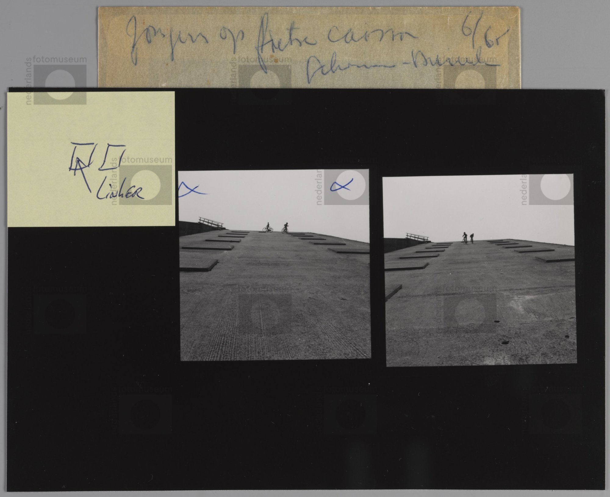 Jongens met hun fiets op een caisson, Schouwen-Duive...