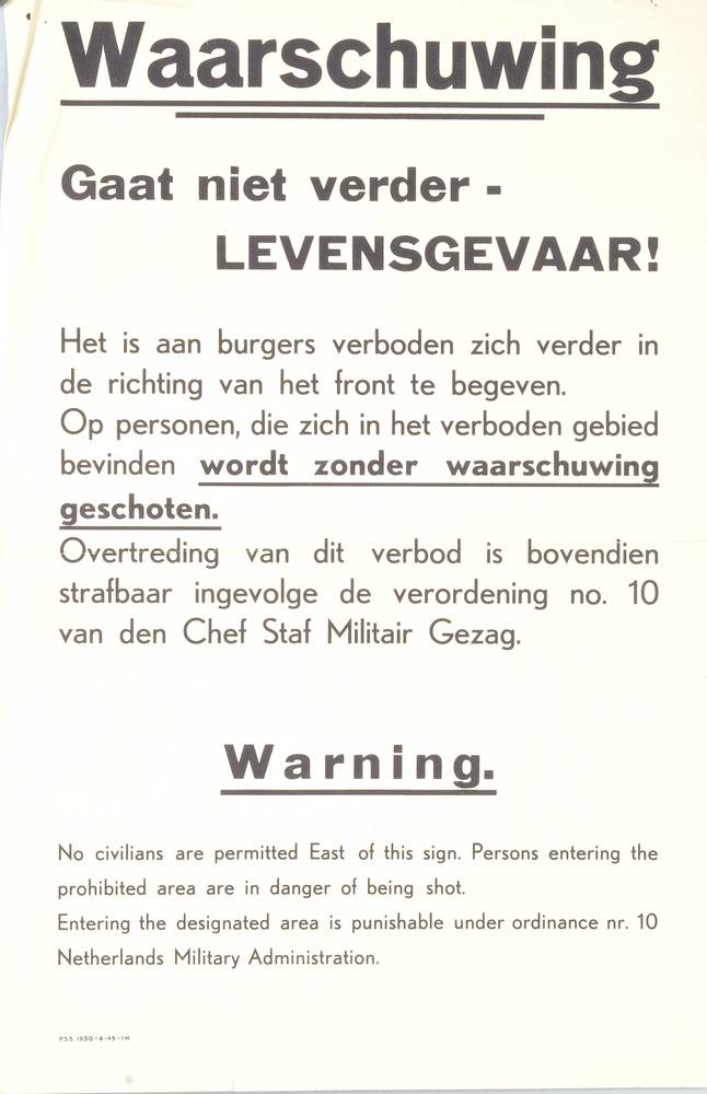 waarschuwing - gaat niet verder - levensgevaar!