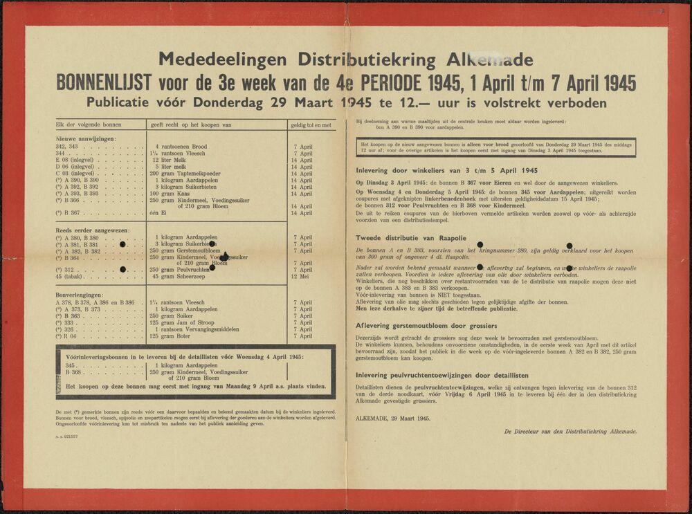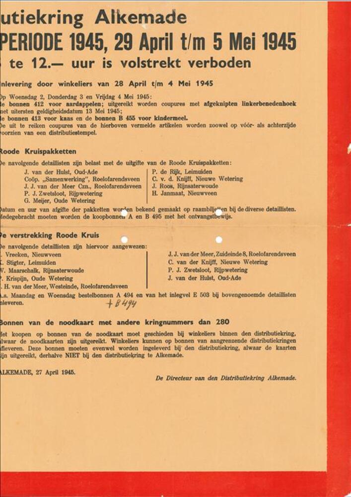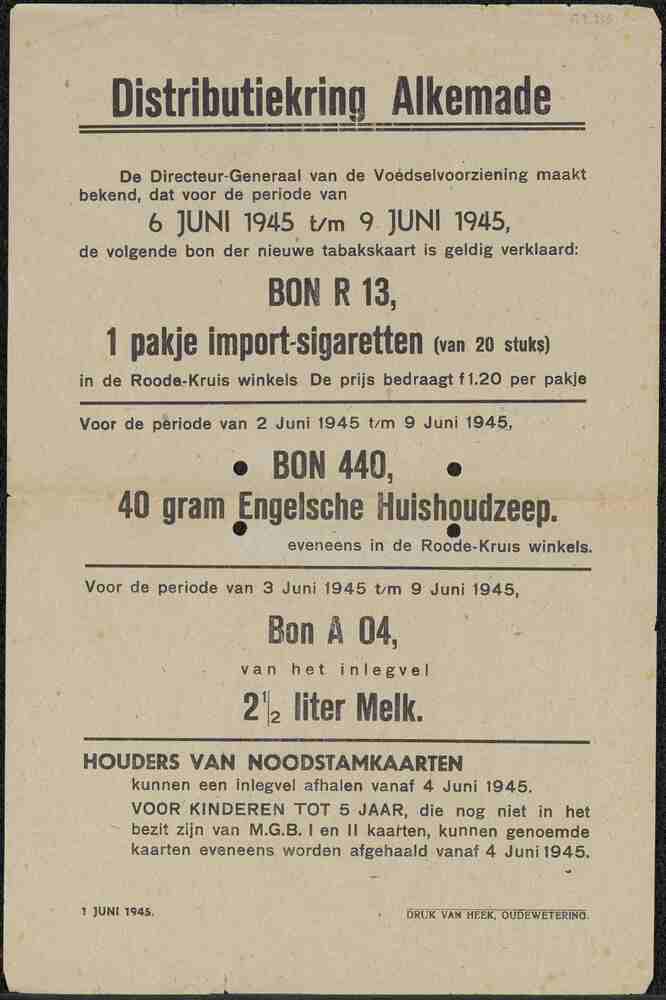 Poster Mededeelingen Distributiekring Alkemade, apri...