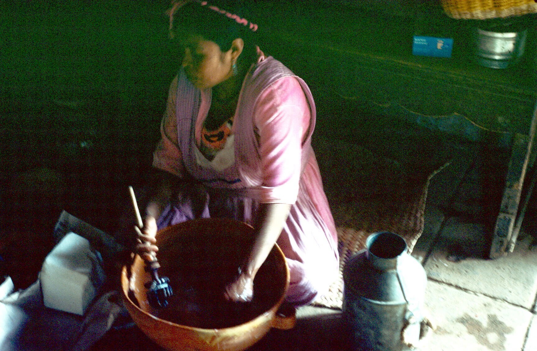 Teresa, vrouw van Ernesto Castillo, chocoladedrank k...