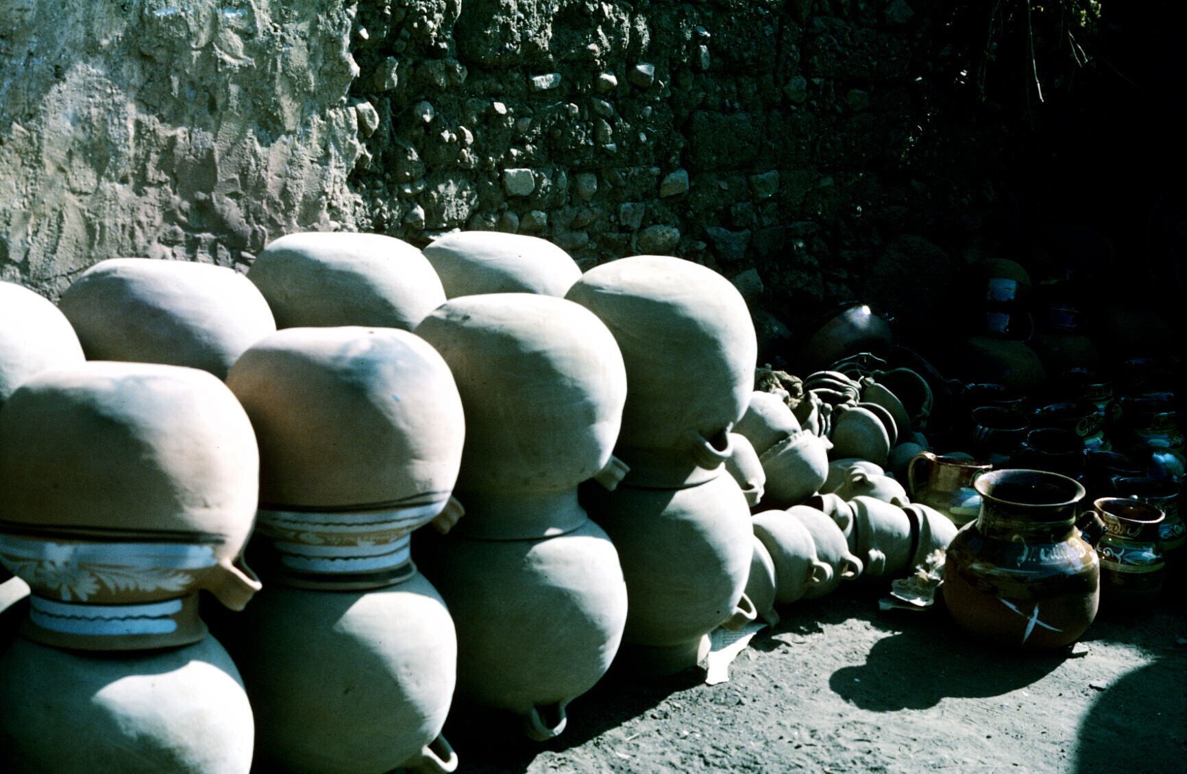 aardewerk op erf Ernesto Castillo, met kerk op achte...