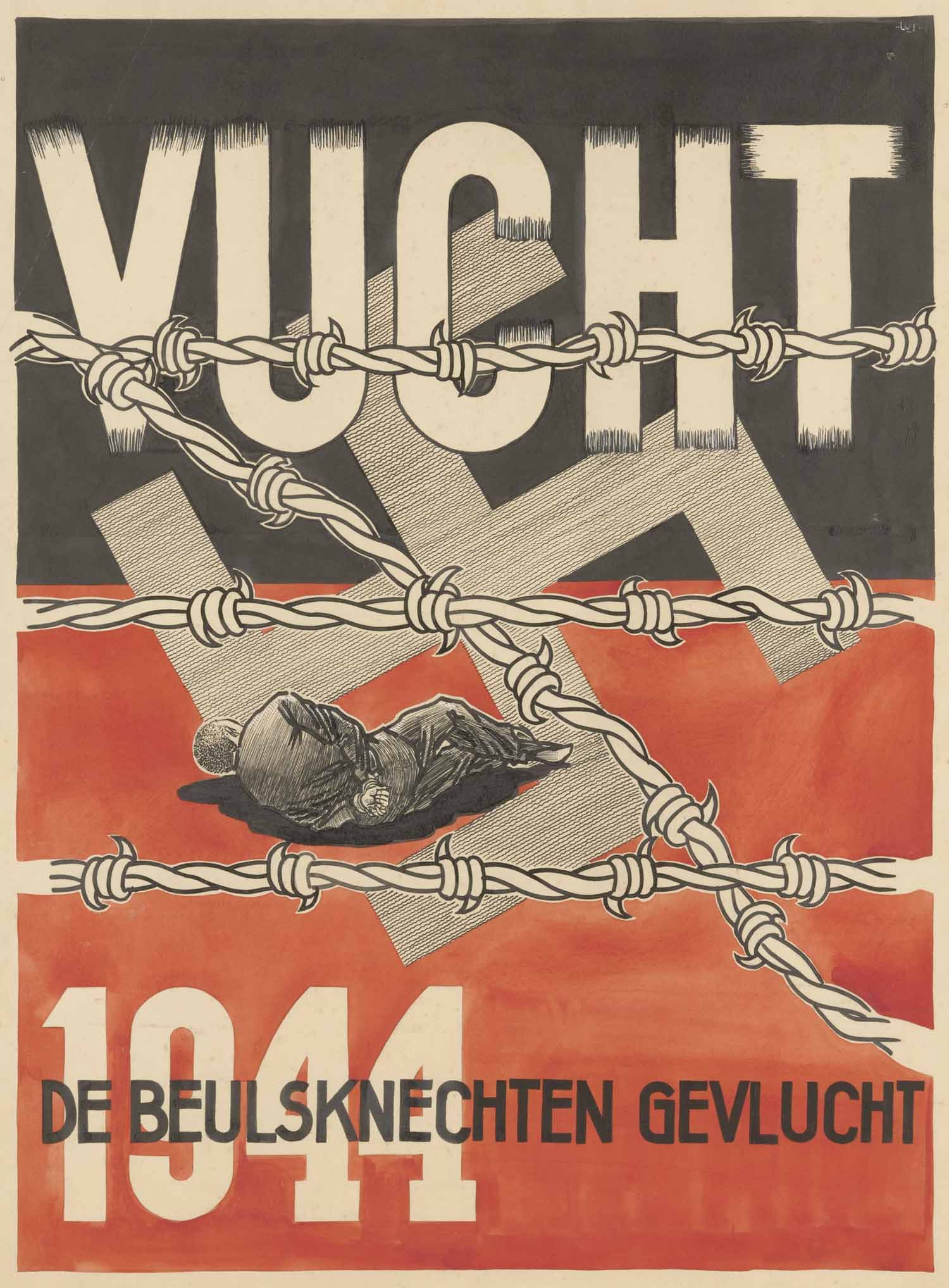 Ontwerp voor een affiche: ''vlucht 1944 de beulsknec...