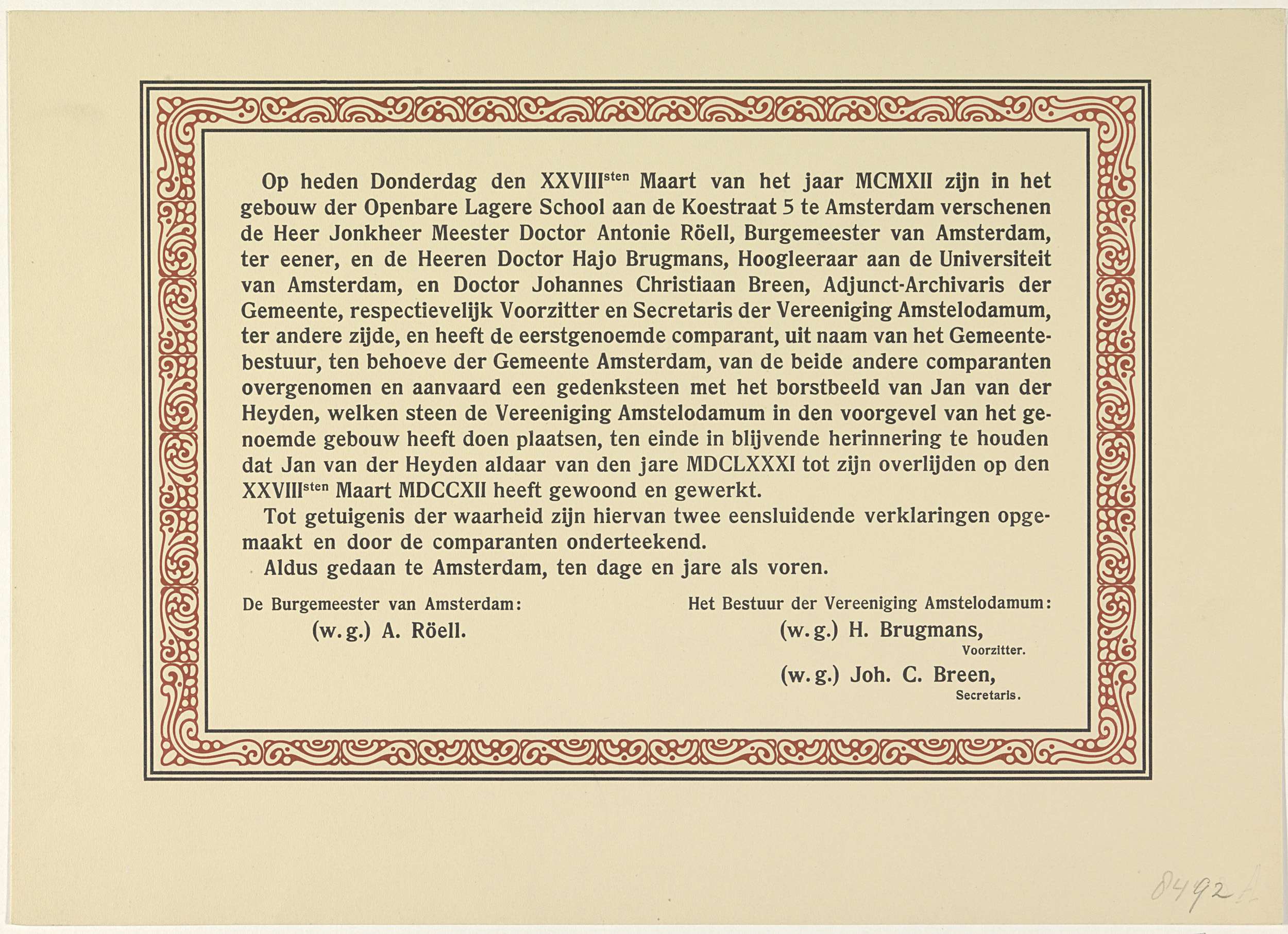 Verklaring over het plaatsen van een gedenksteen in ...