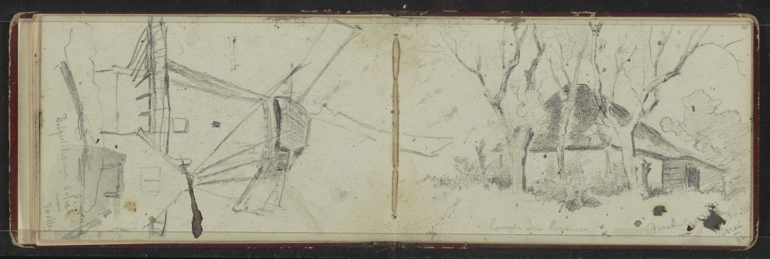 Molen aan de Delfshavense Schie en een boerderij aan...