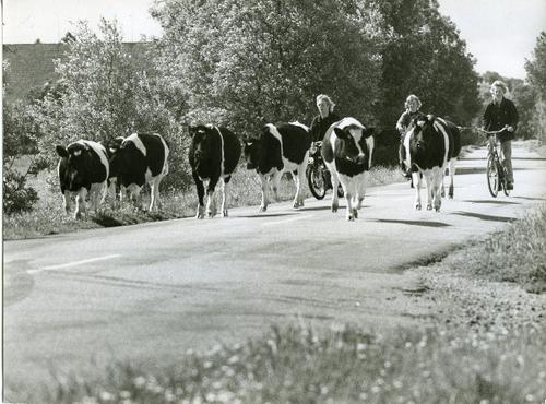 Foto in zwart-wit van herkauwende koeien door J.D. d...