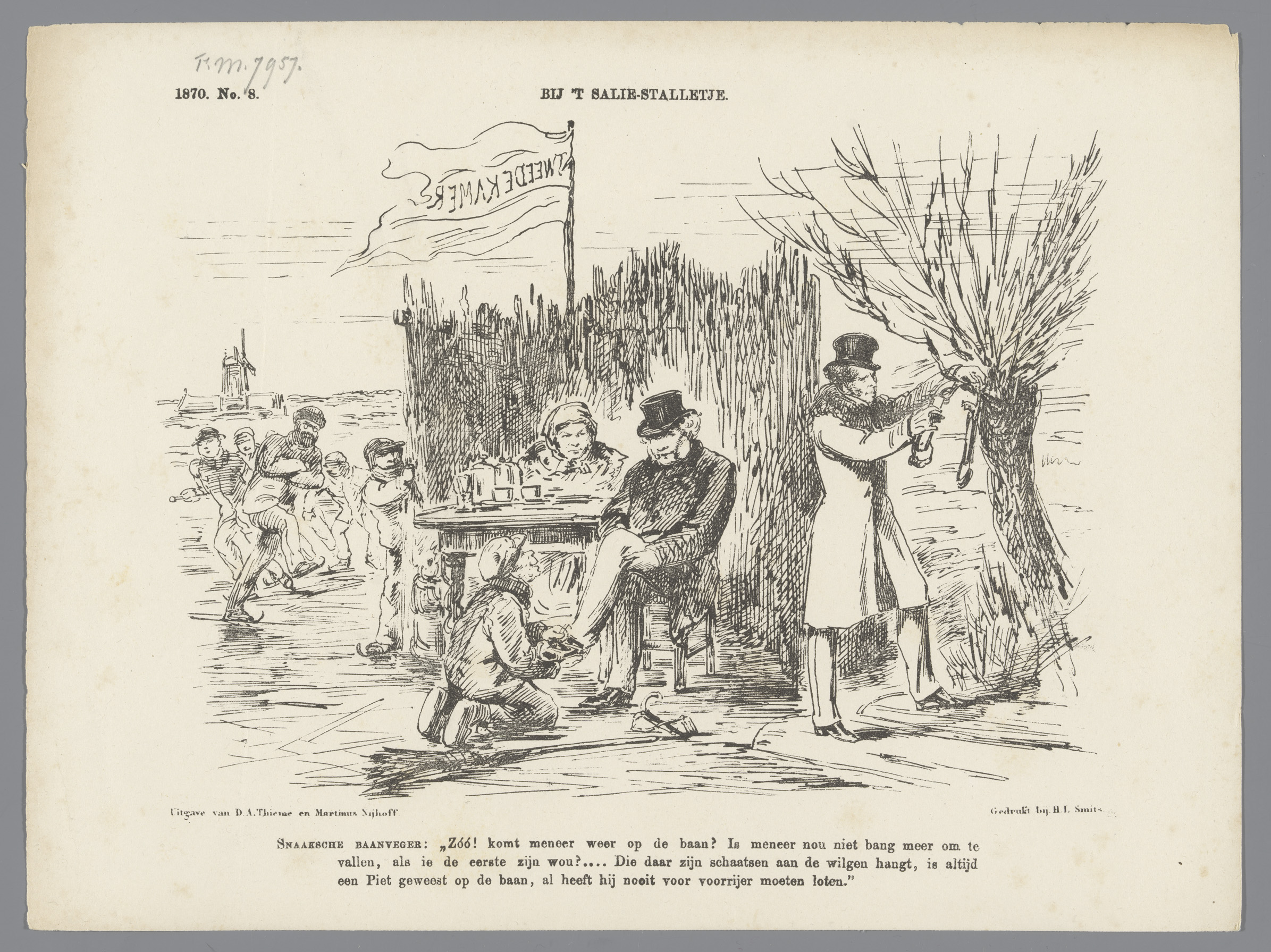 Spotprent met Van Reenen als schaatsenrijder, 1870