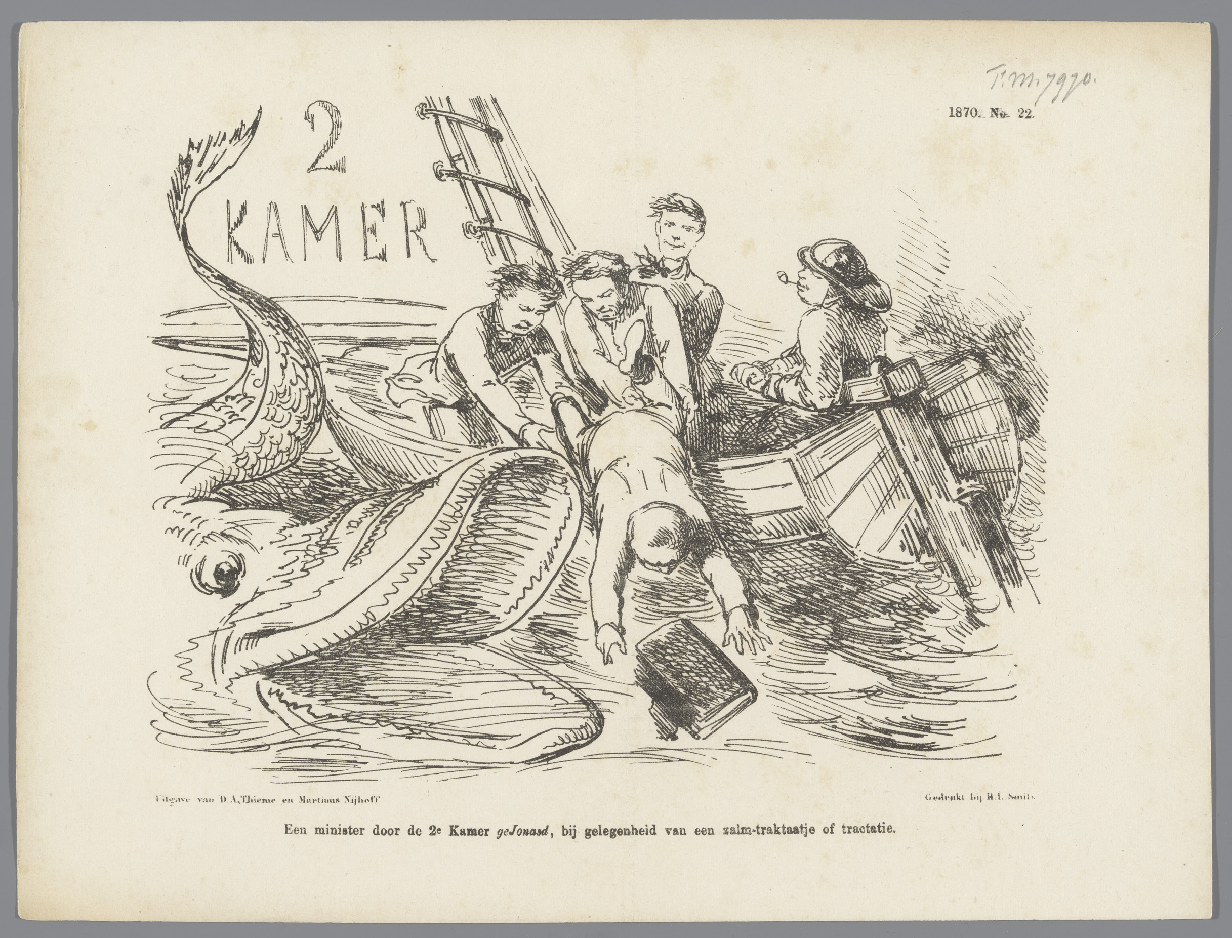 Spotprent met minister Roest van Limburg als Jonas, ...