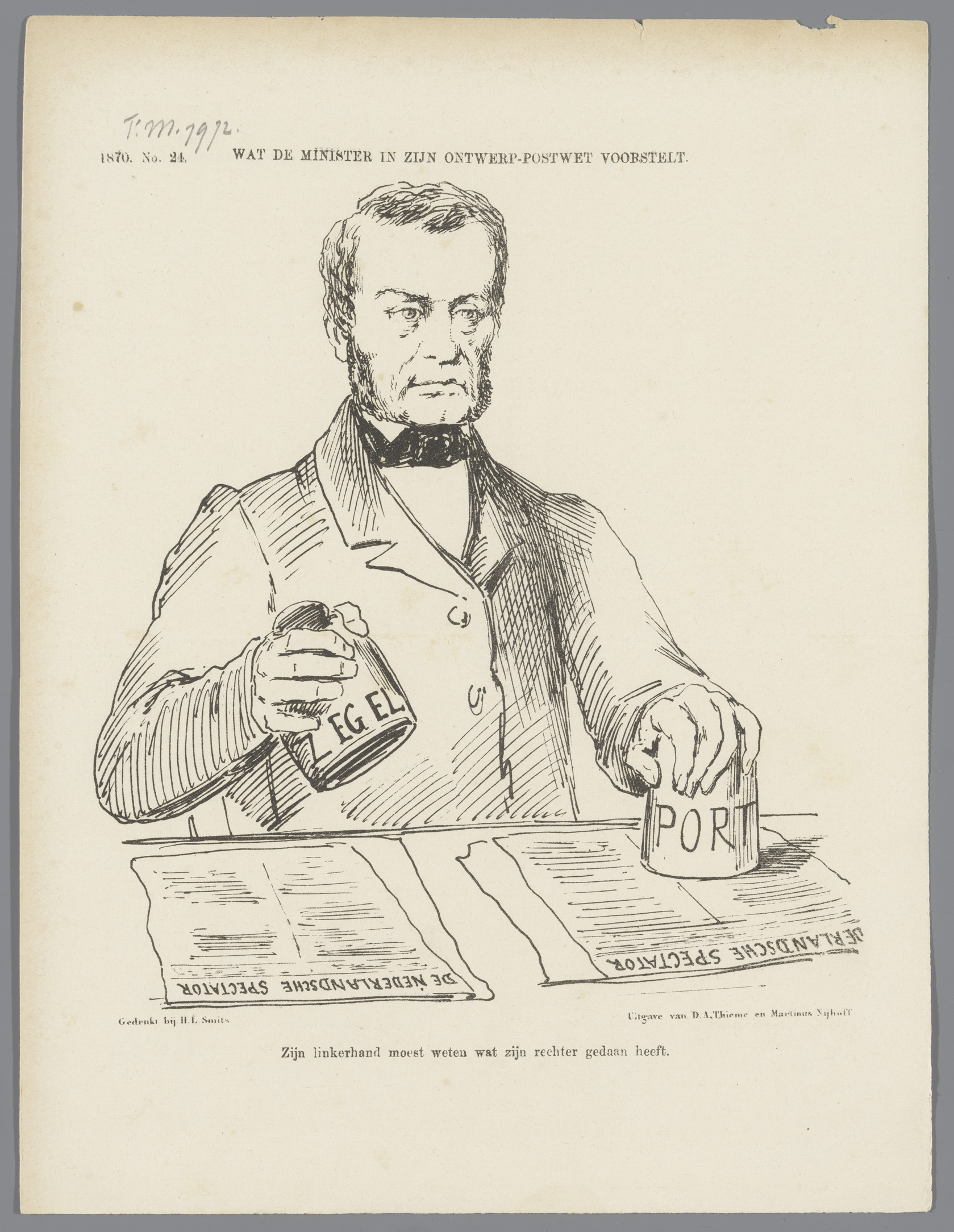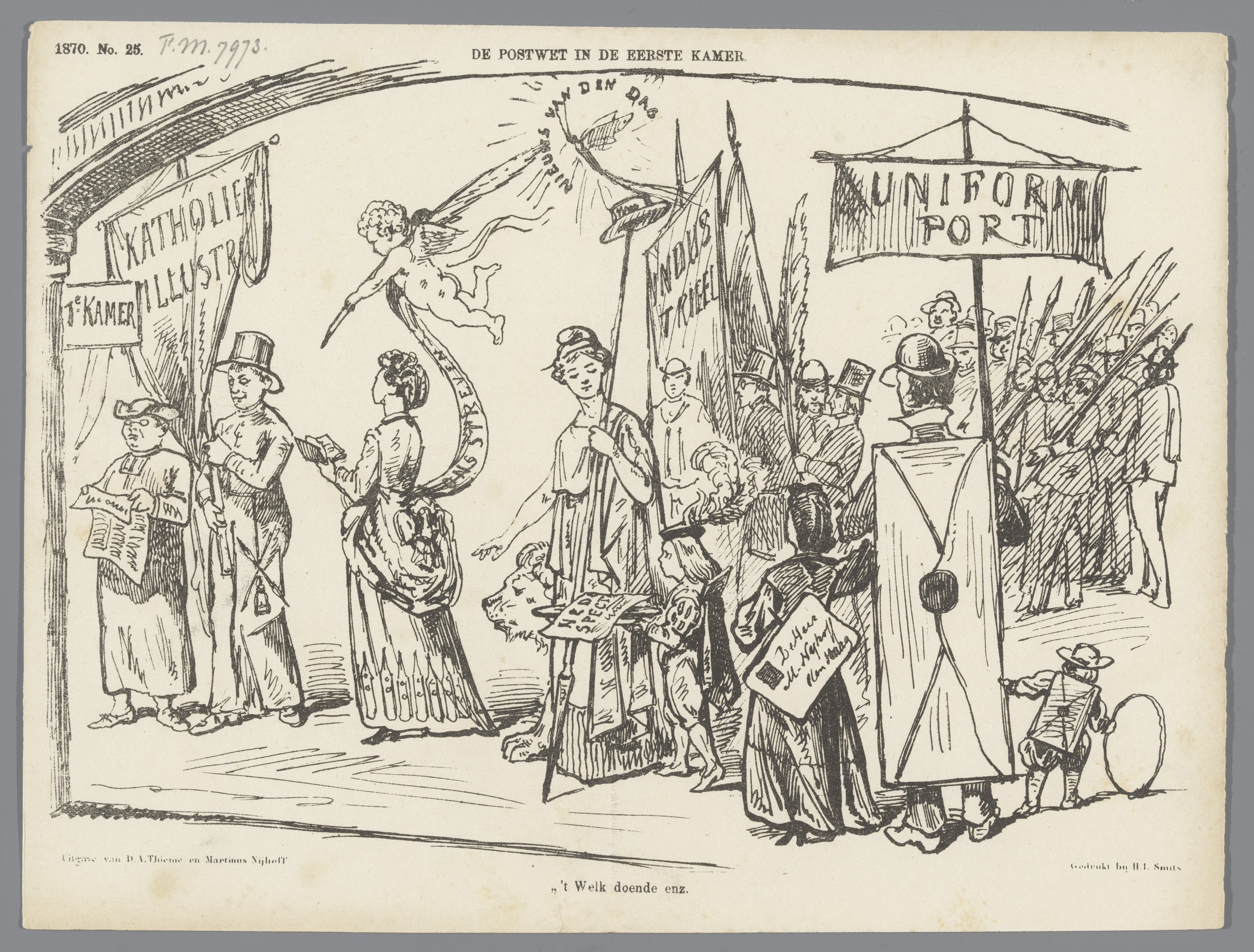Spotprent op de behandeling van de postwet in de Eer...