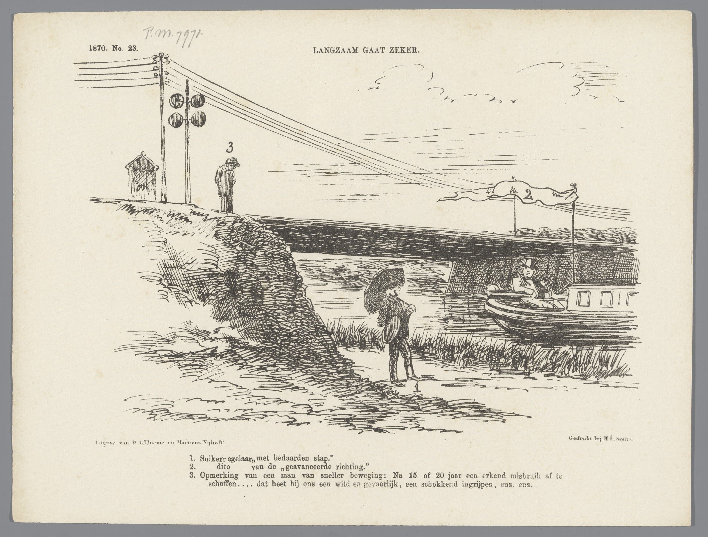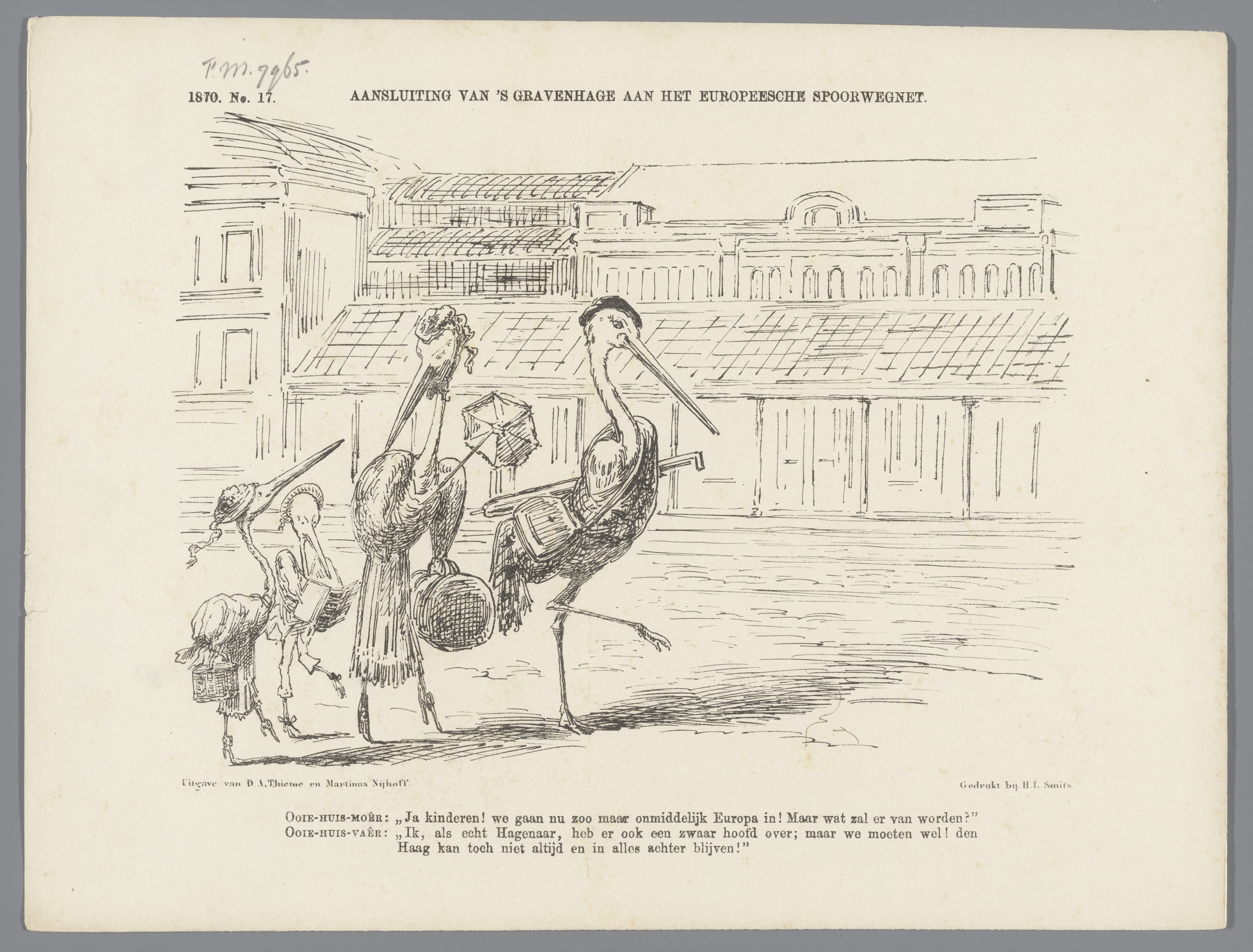 Spotprent op de opening van de spoorlijn Den Haag-Go...