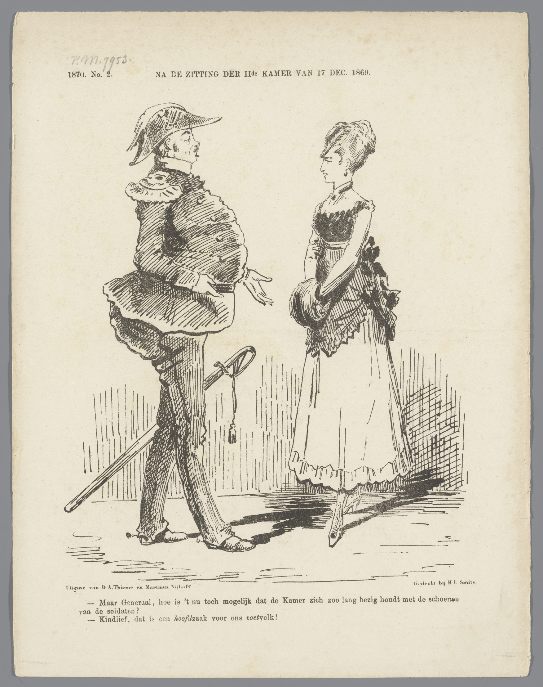 Spotprent op Minister van Oorlog Van Mulken, 1870