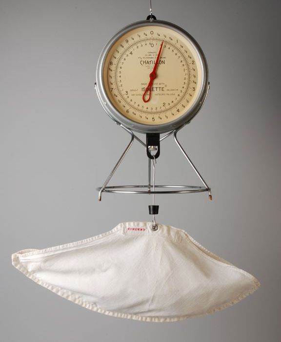 Babyweegschaal met twee ophangelementen en twee mandjes