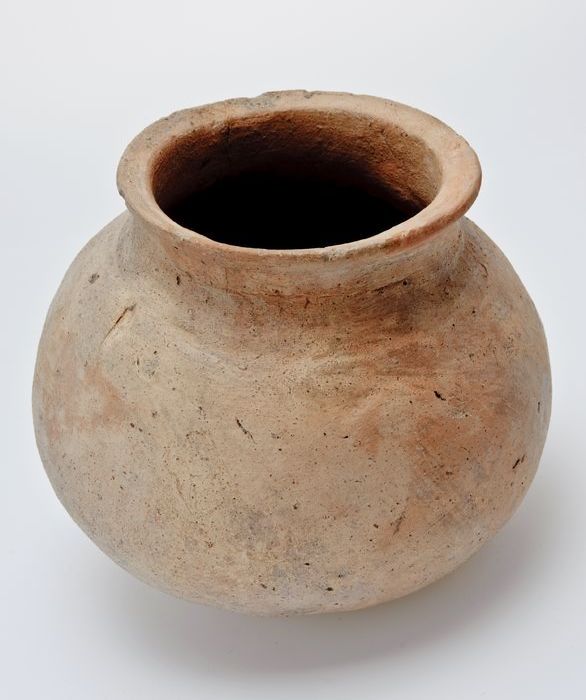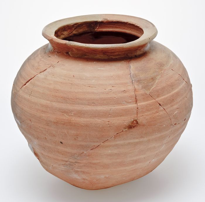 Voorraadpot op lensbodem, draairillen, ongeglazuurd
