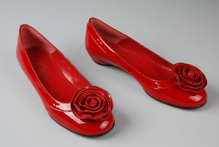 Paar roodgelakte damesschoenen, lage hak, "Corbeau"