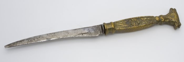 IJzeren mes met bronzen heft, eindigend met koeienkop