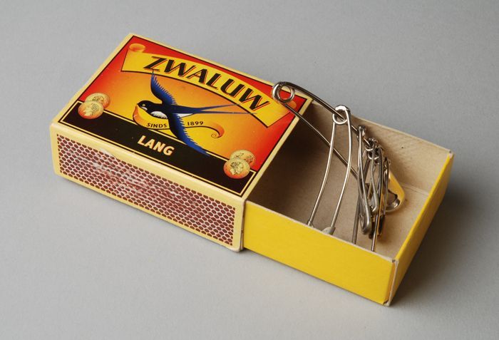 Veiligheidsspelden in diverse maten, in lucifersdoos...