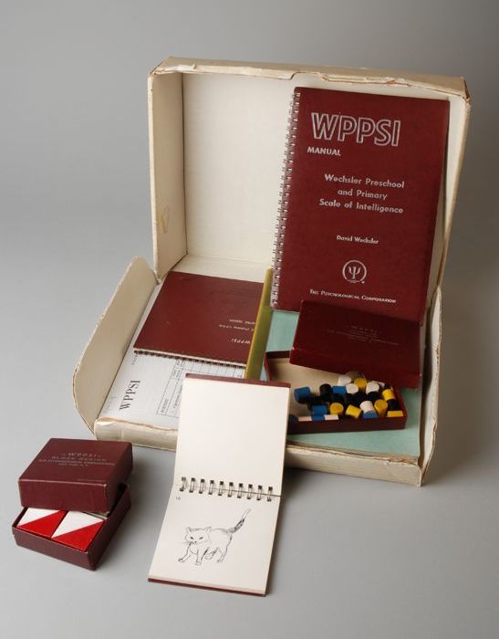 Kartonnen doos met de Wechsler intelligentieschaal v...