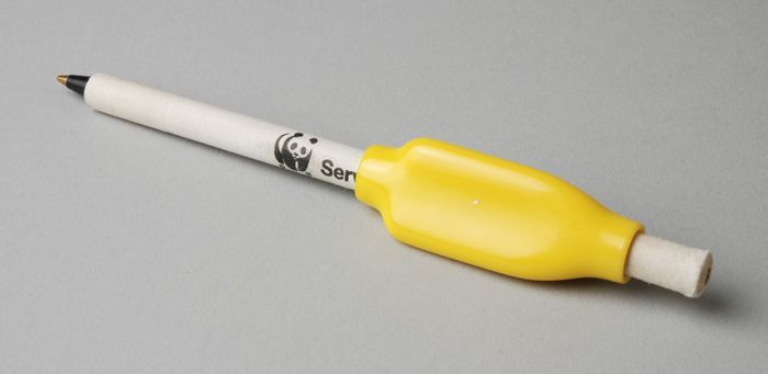 Gele plastic houder voor ballpoint, hulpmiddel bij h...