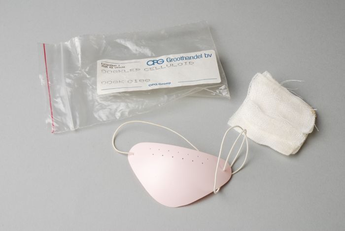 Celluloid oogklep in vierkant doorzichtig plastic zakje