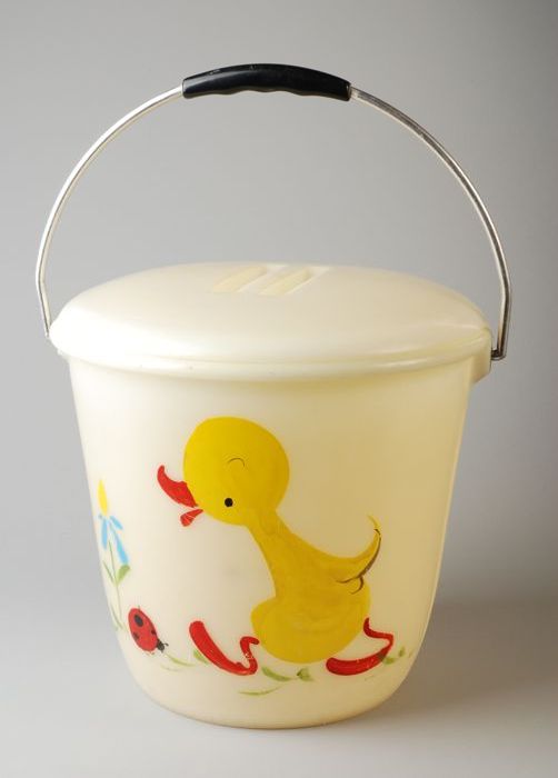 Plastic toiletemmer met deksel en zwart handvat, han...