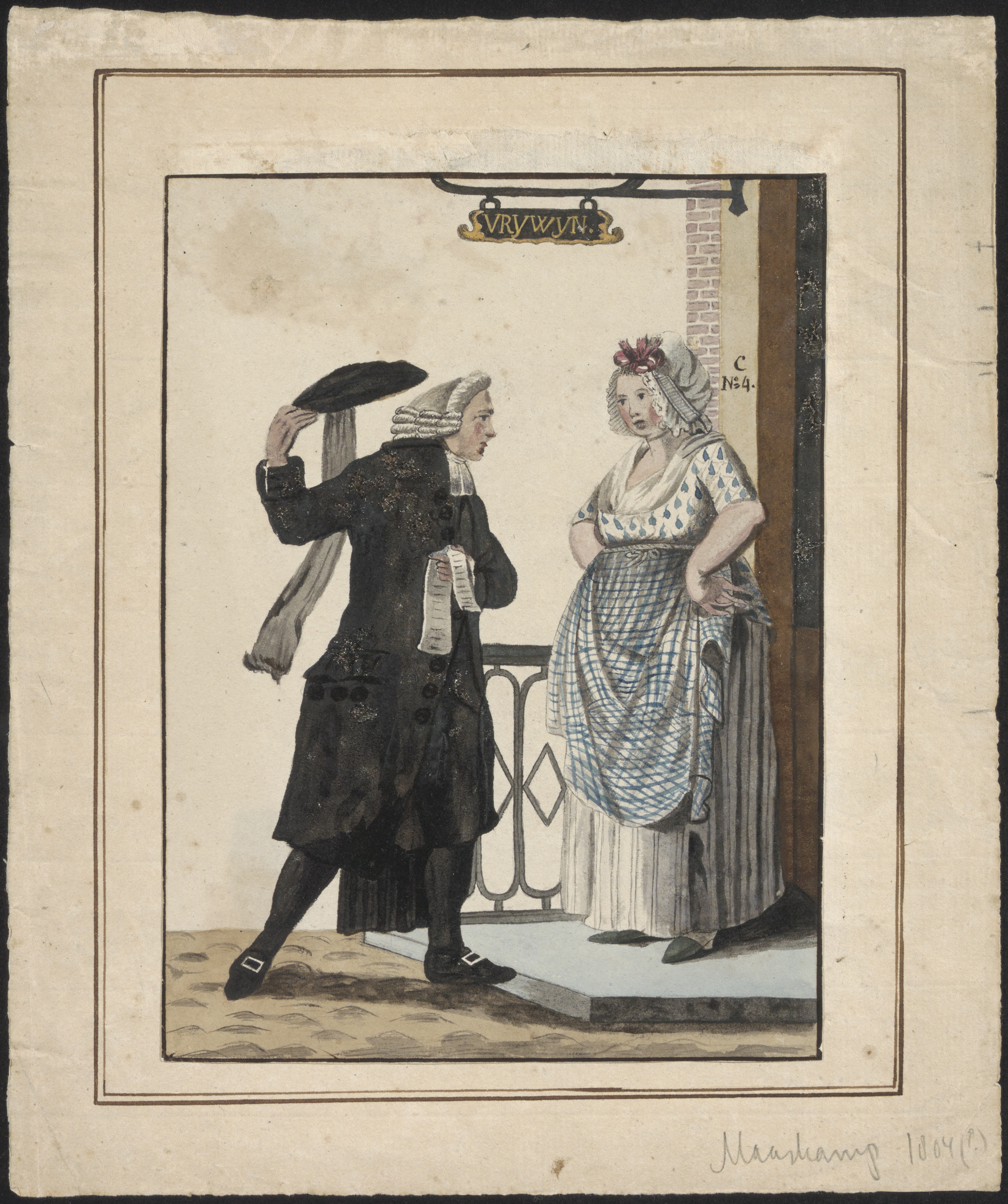 Staande man en vrouw.
