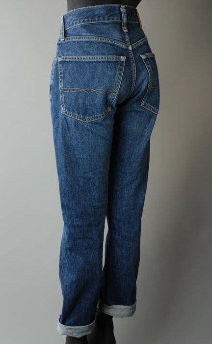 Blauwe jeans van merk G-Star, omgelegde broekspijpen