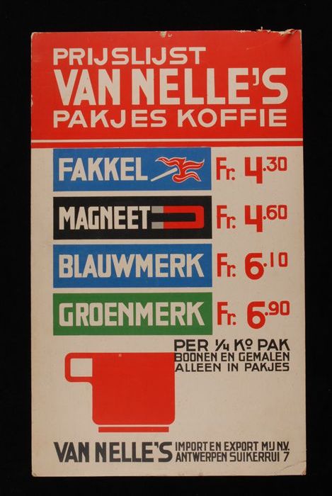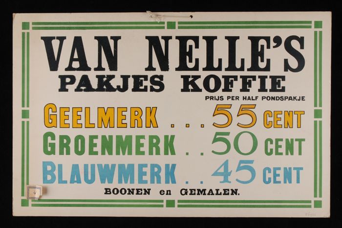Prijslijst VAN NELLE´S PAKJES KOFFIE met pak Roodmer...