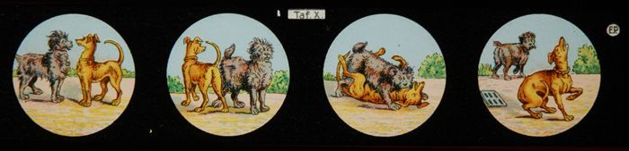Toverlantaarnplaat "E.P." (Ernst Plank) met dieren a...