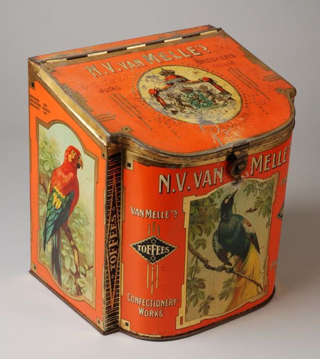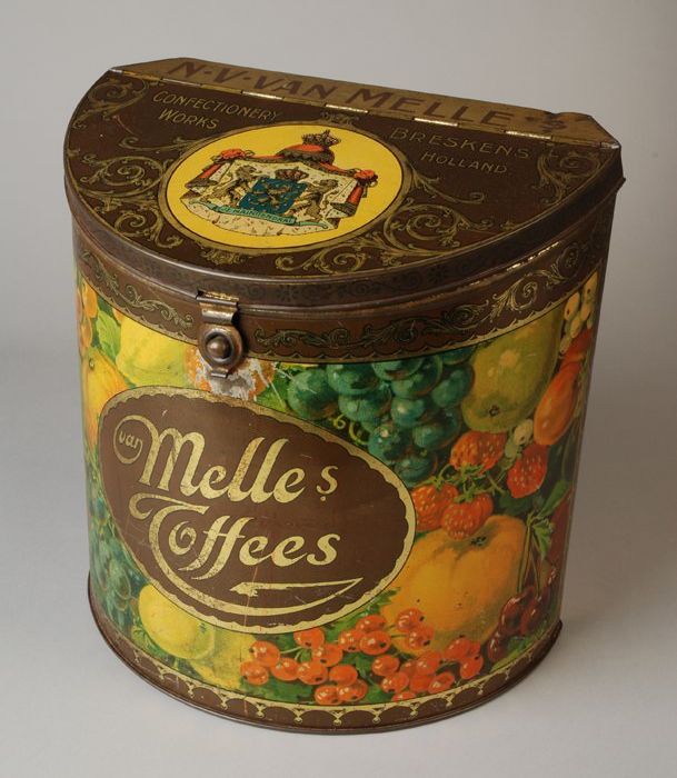 Oranje toffeeblik met "van Melle's confectionary wor...