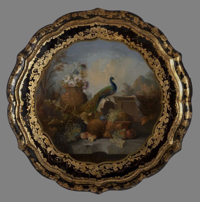 Tafelblad met geschilderde voorstelling van pauw, bl...
