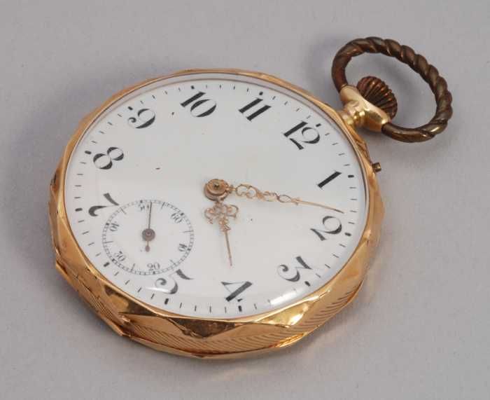 Gouden zakhorloge met wit-email wijzerplaat met goud...