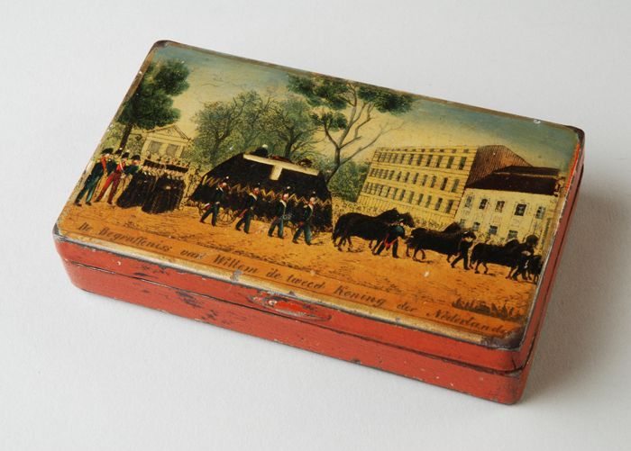 Tabaksdoos met rouwstoet en begrafenis Koning Willem II