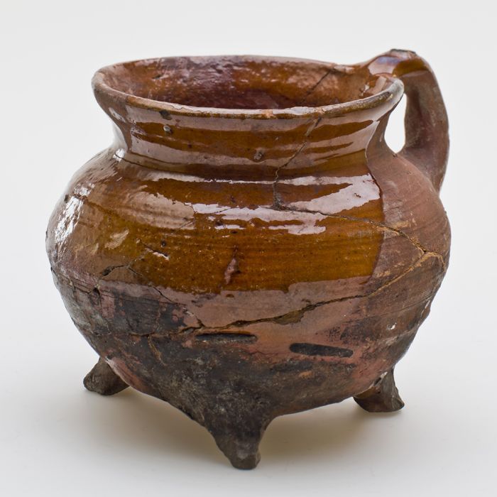 Aardewerk kookpot, kookkan met fijne draairillen op ...