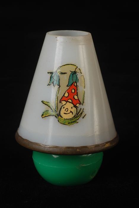 Witte melkkan van kinderservies met hoepelend meisje...