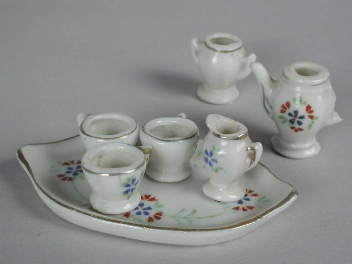 Witte theepot van kinderservies met twee tennis spel...