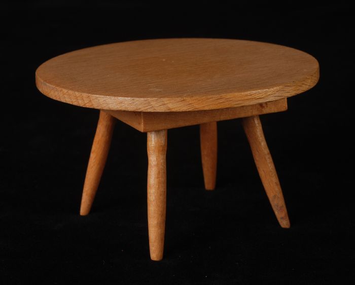 Rond dienblaadje van doorzichtig glas, waarop zes ma...
