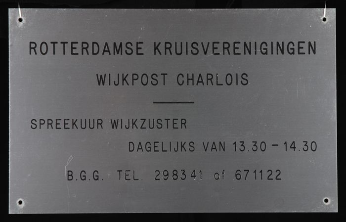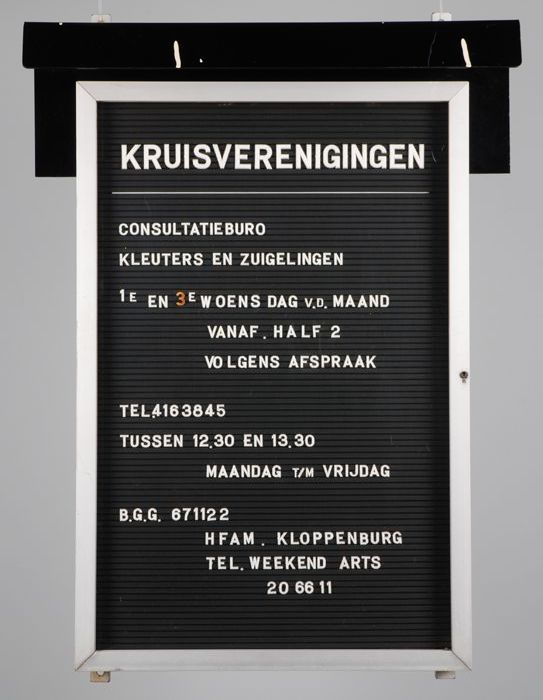 Metalen tekstbord met aanduiding van het spreekuur v...