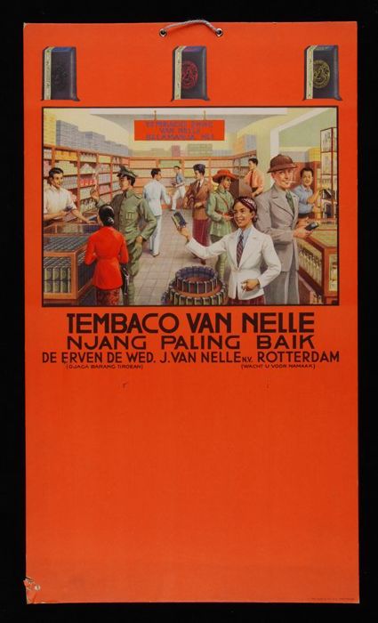 Reclamebord TEMBACO VAN NELLE, met tafereel in winkel