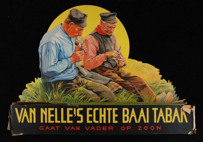 Reclamebord VAN NELLE´S ECHTE BAAI TABAK met een boe...