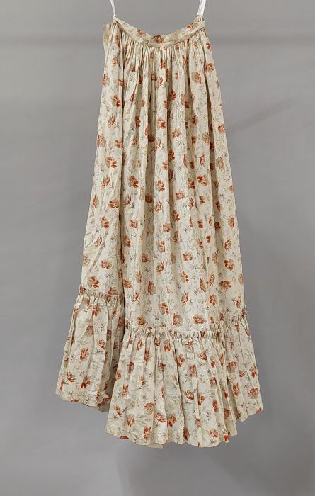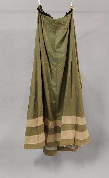 Rok, groen, gerend, met stroken beige stof onderraan...
